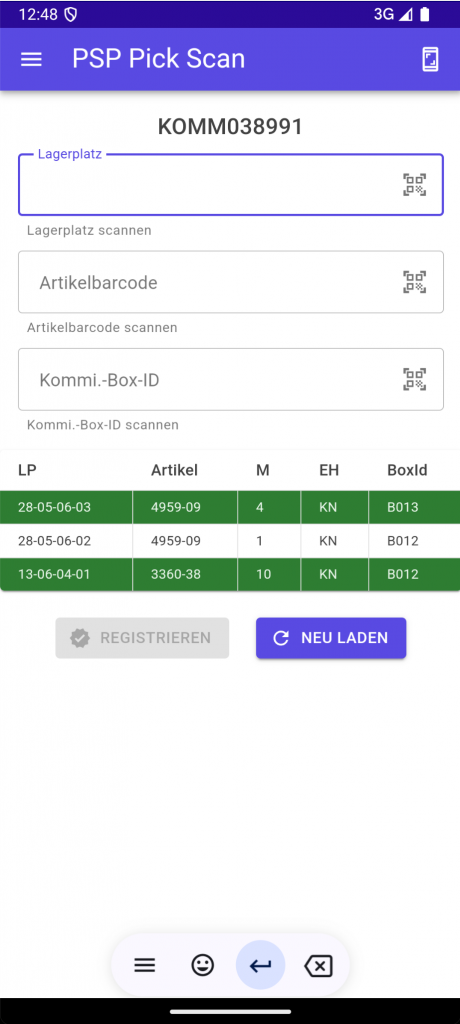 Innerhalb von drei Wochen wurde zudem eine Android-App für Hochleistungsscanner entwickelt, mit der Lagerplätze und Artikel mobil gescannt werden können.