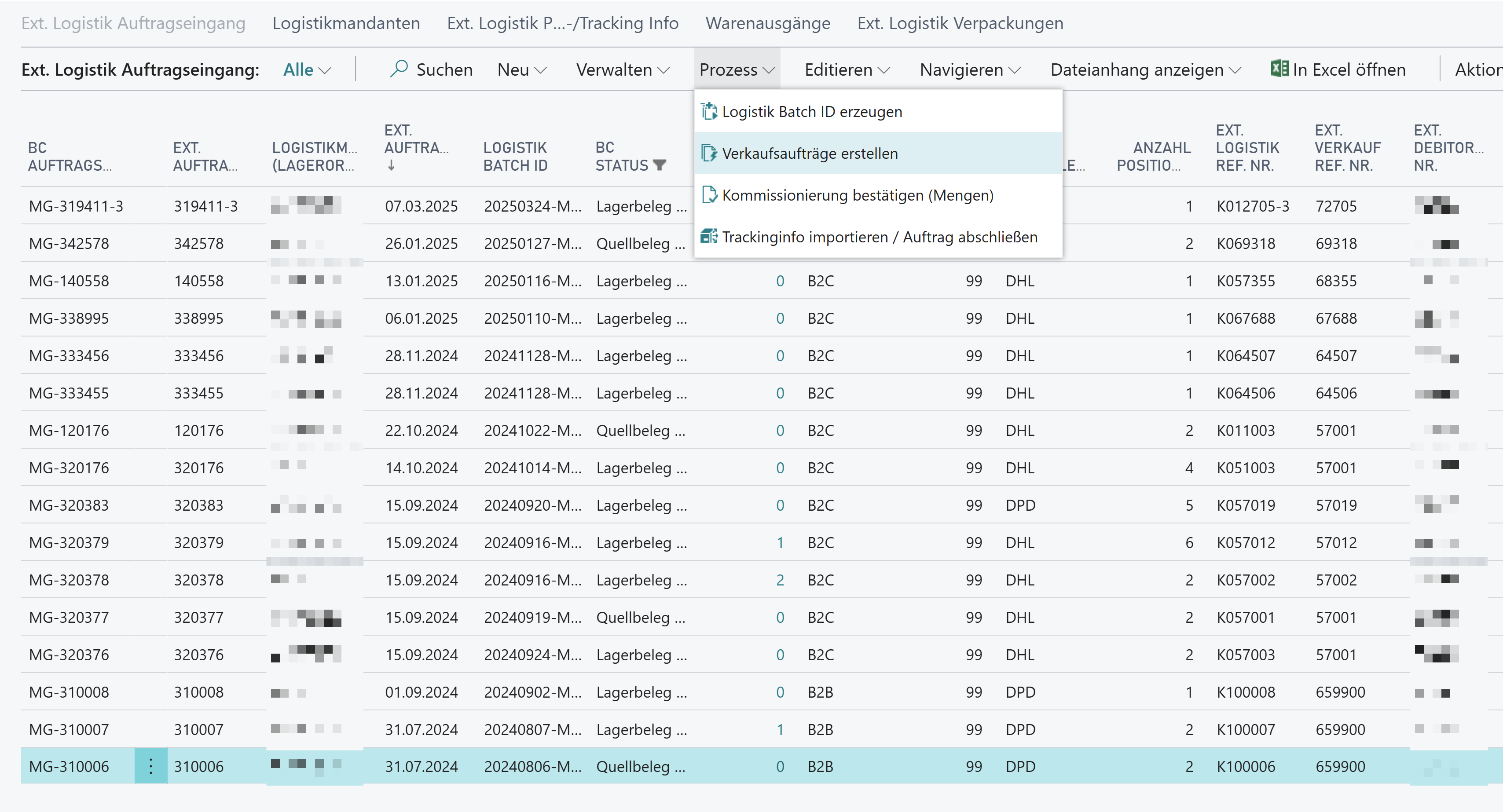 - Erst nach erfolgreicher Prüfung durch Business Central werden die Artikelpositionen endgültig registriert und bestätigt.